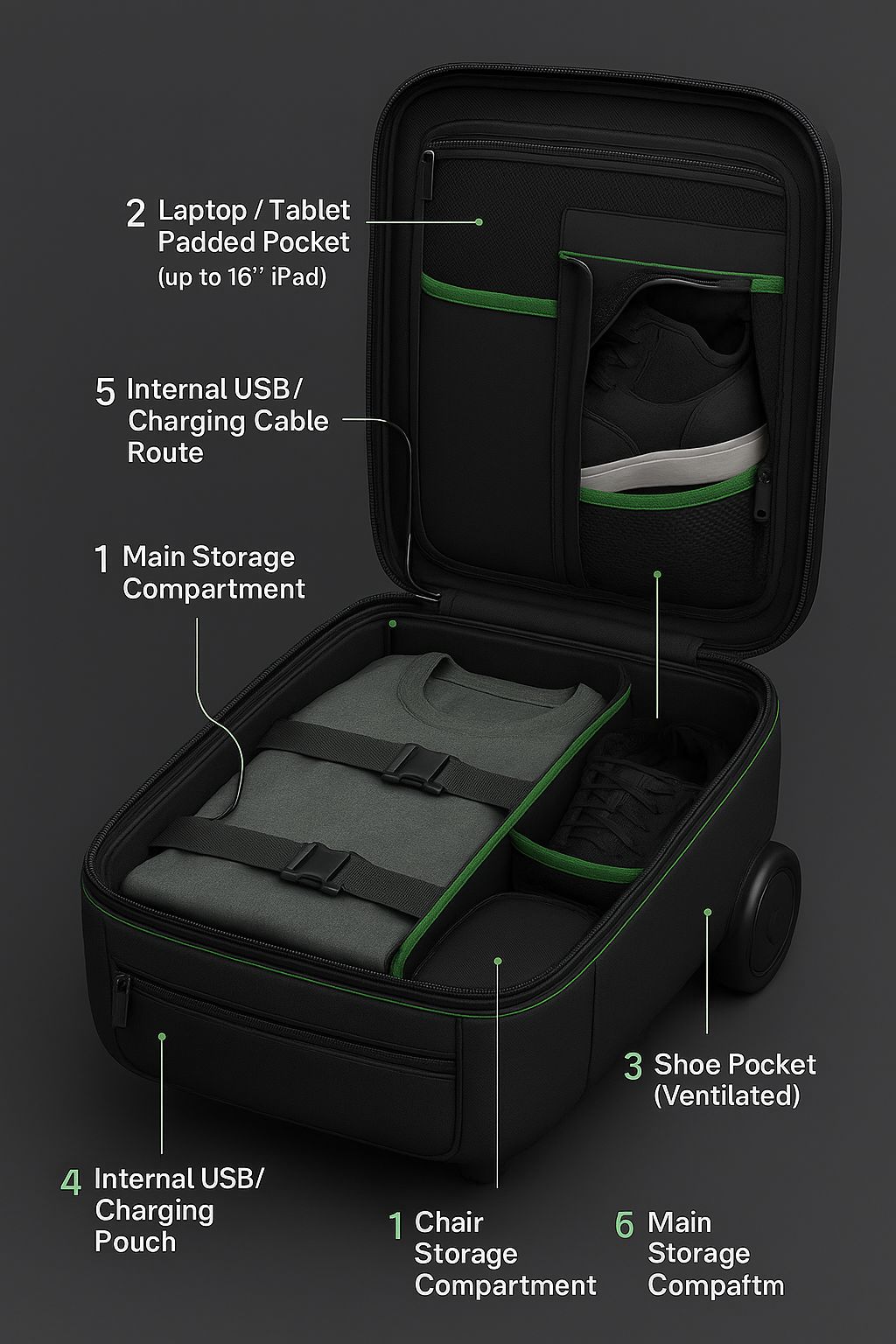 - Exterior: Airline carry-on compliant (approx. 22 x 14 x 9 in)*